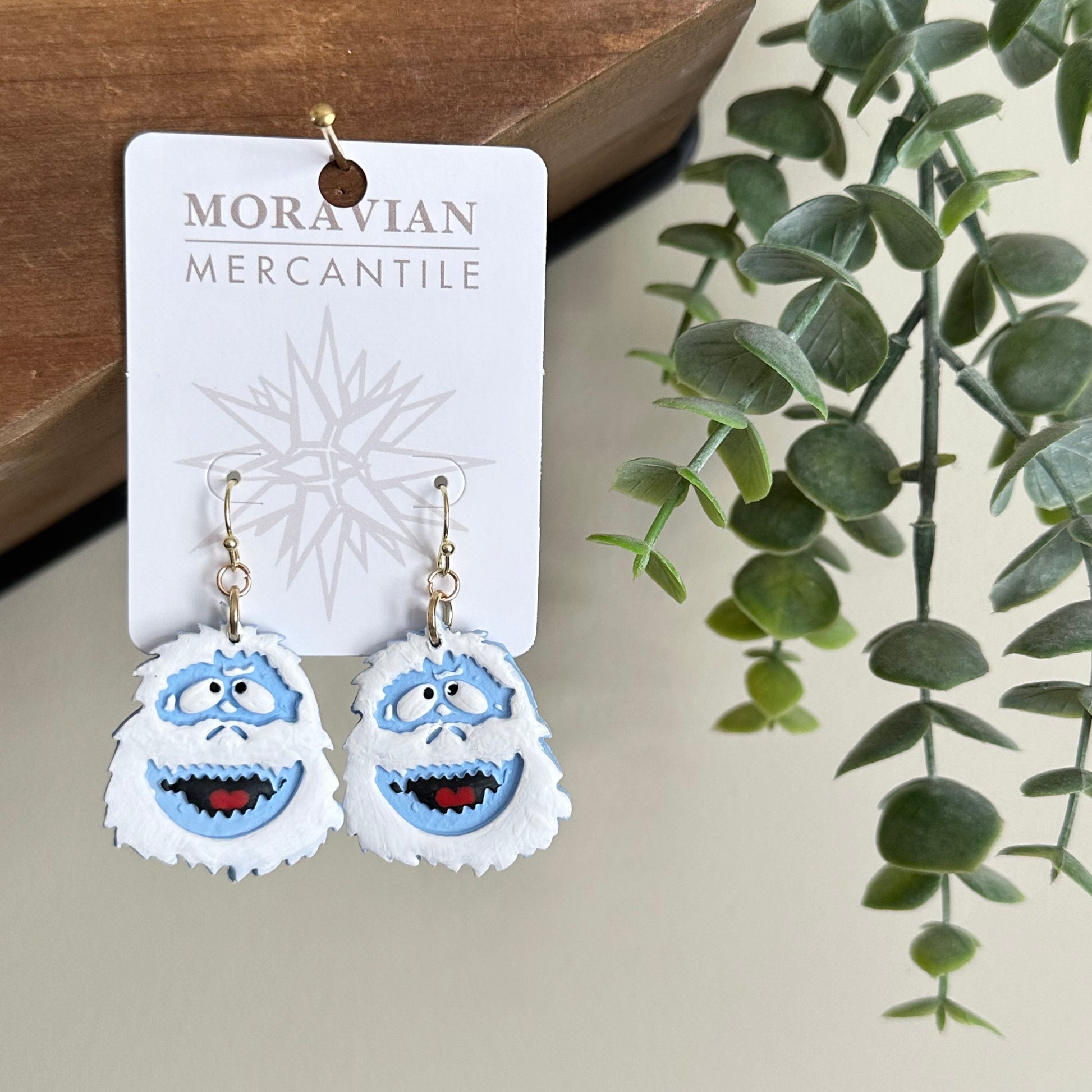 Abominable snowman earrings - roughly 2" long, made with 14k gold-plated hooks