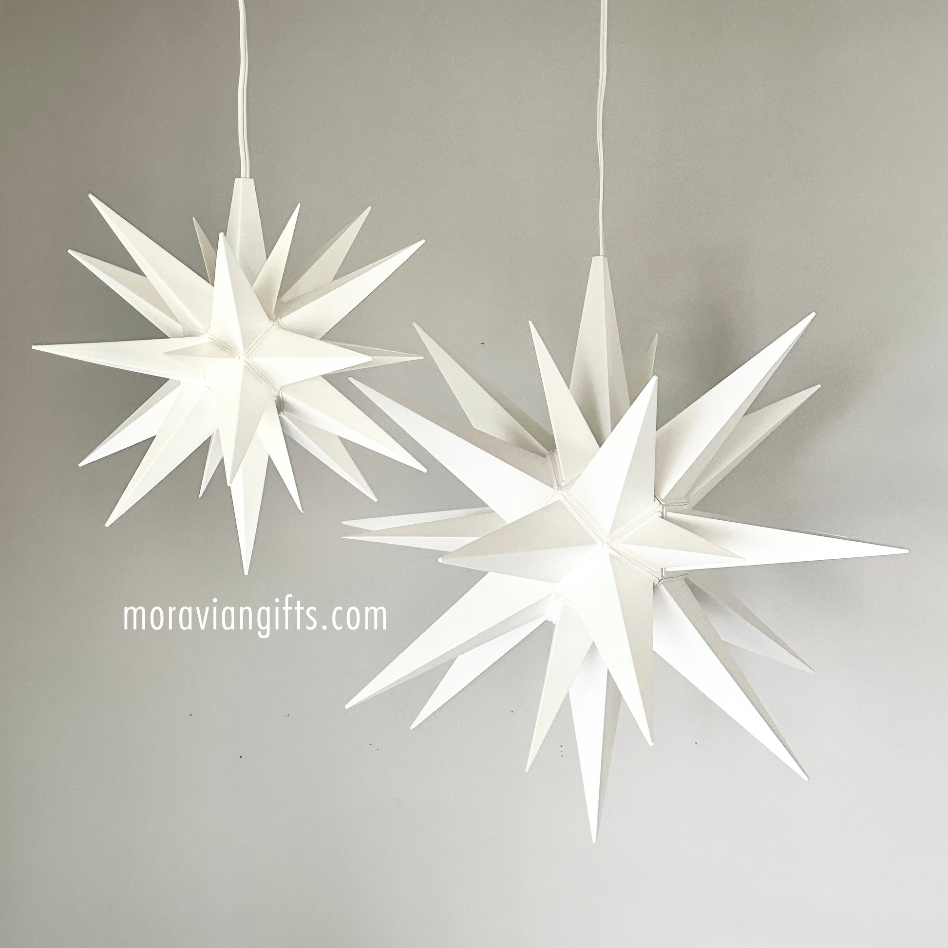 This durable lighted Moravian star is perfect for your porch or the top of your Christmas tree! Our stars are much more sturdy than the competition, featuring high grade construction from materials that will not dry rot or break down. Even better, our stars assemble very easily, with a no-peg design that uses a simple twist-and-lock connection. This makes our stars stronger and last longer.